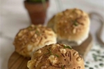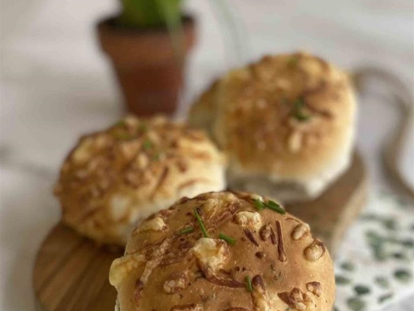 Zachte witte bolletjes met geraspte kaas en bieslook.