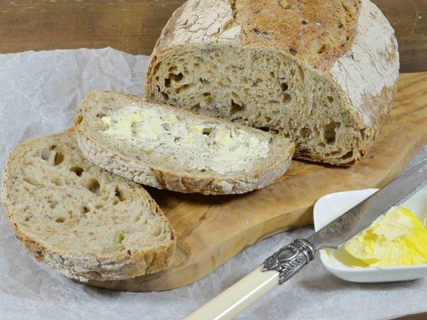 Op basis van ekologisch speltmeel, speltbloem levain en geroosterde zaden.
